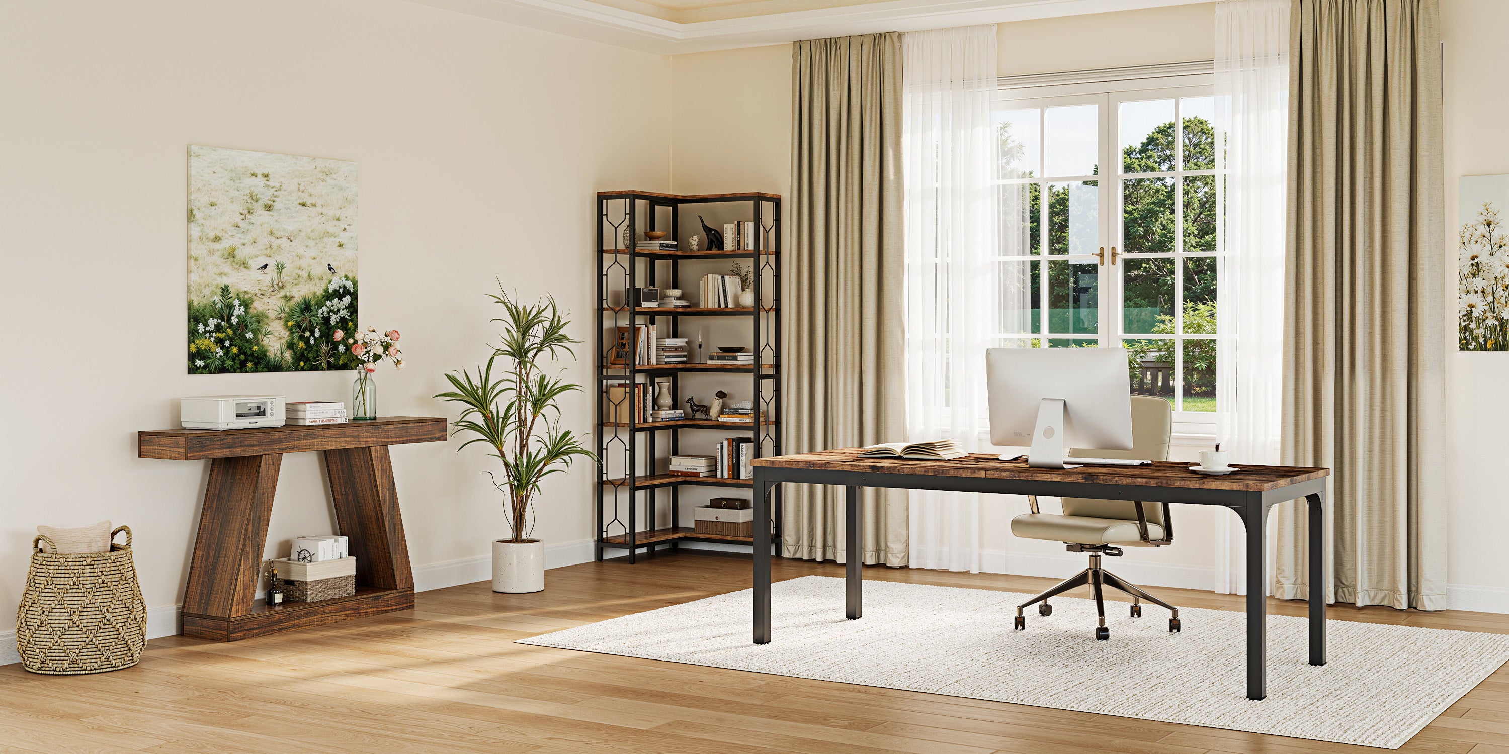 Tribesigns ofrece una completa gama de productos de mobiliario, como escritorios, mesas de entrada, sofás, organizadores, libreros, mesas de comedor, mesas de recepción y buffets, entre otros.
