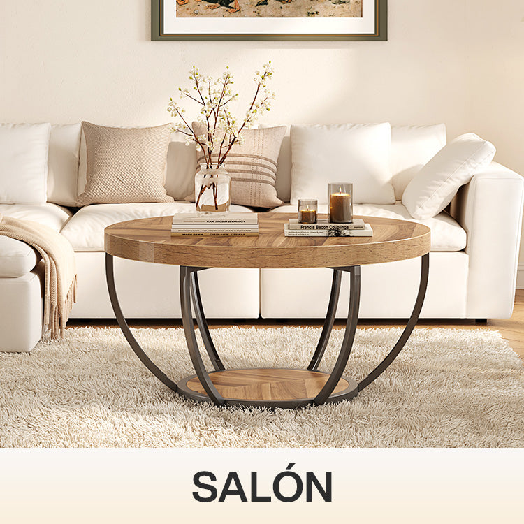 Tribesigns Mesa de centro redonda con 2 estantes de almacenamiento